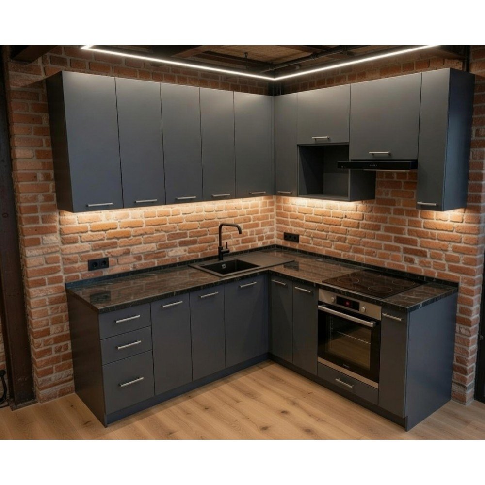 Кухню з фасадами ЛДСП кутова 2,0м*2,0м купити зі знижкою у Києві та Україні. Офіційний дистриб'ютор від фабрики Київський Стандарт.