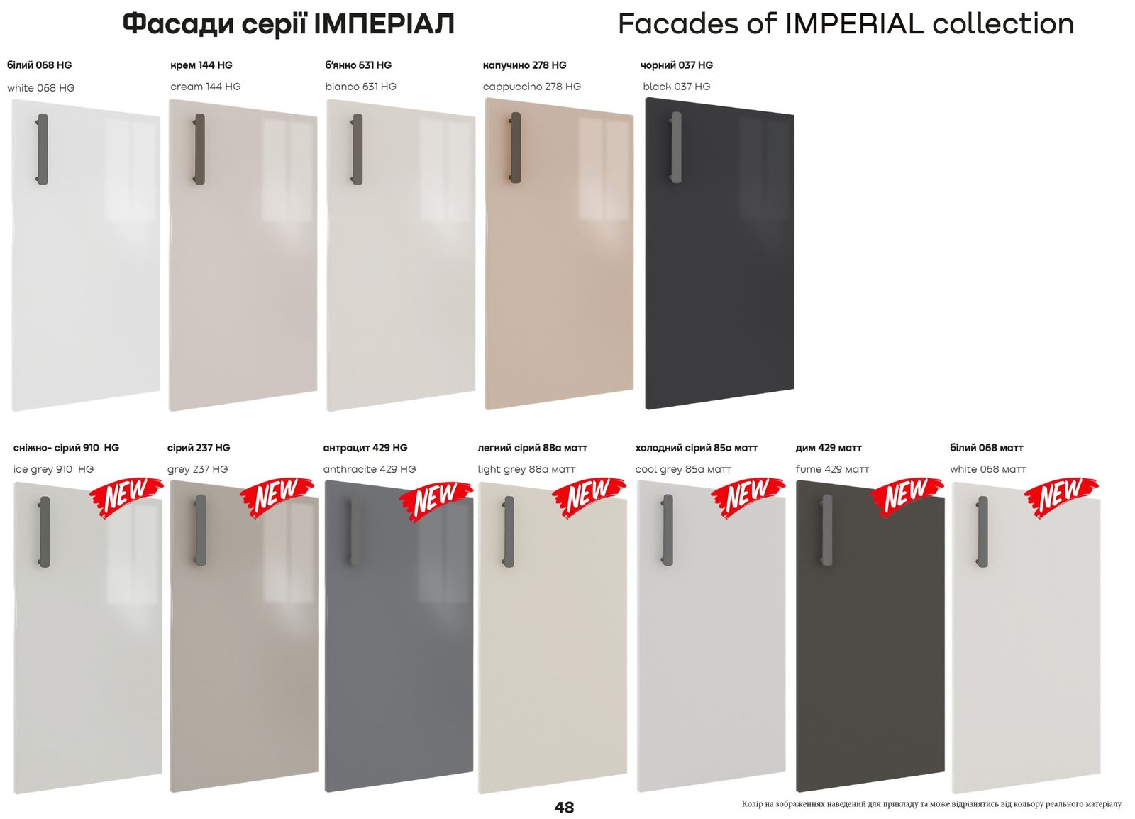 Матеріал фасаду – МДФ+HPL панель 18 мм з глянцевою кромкою 1 мм в колір