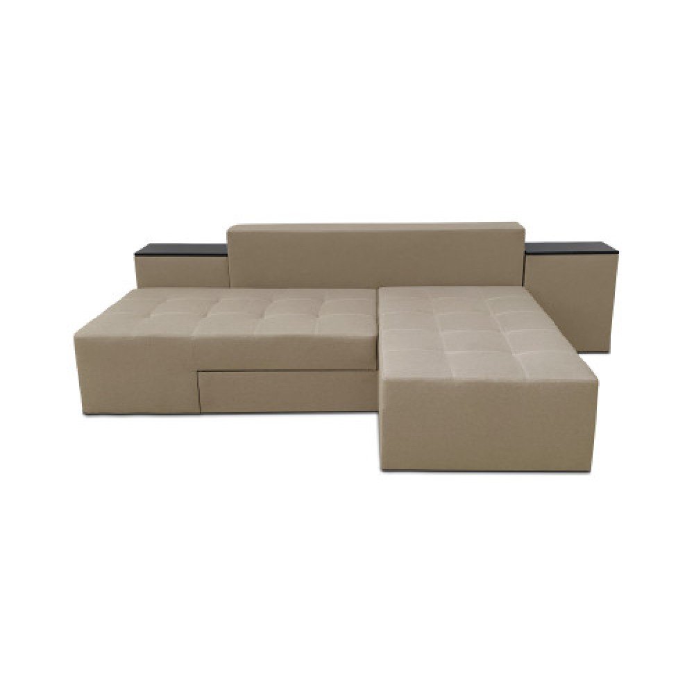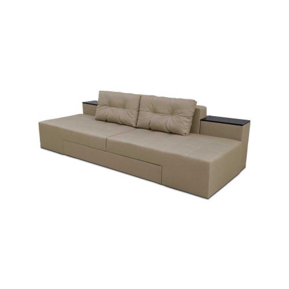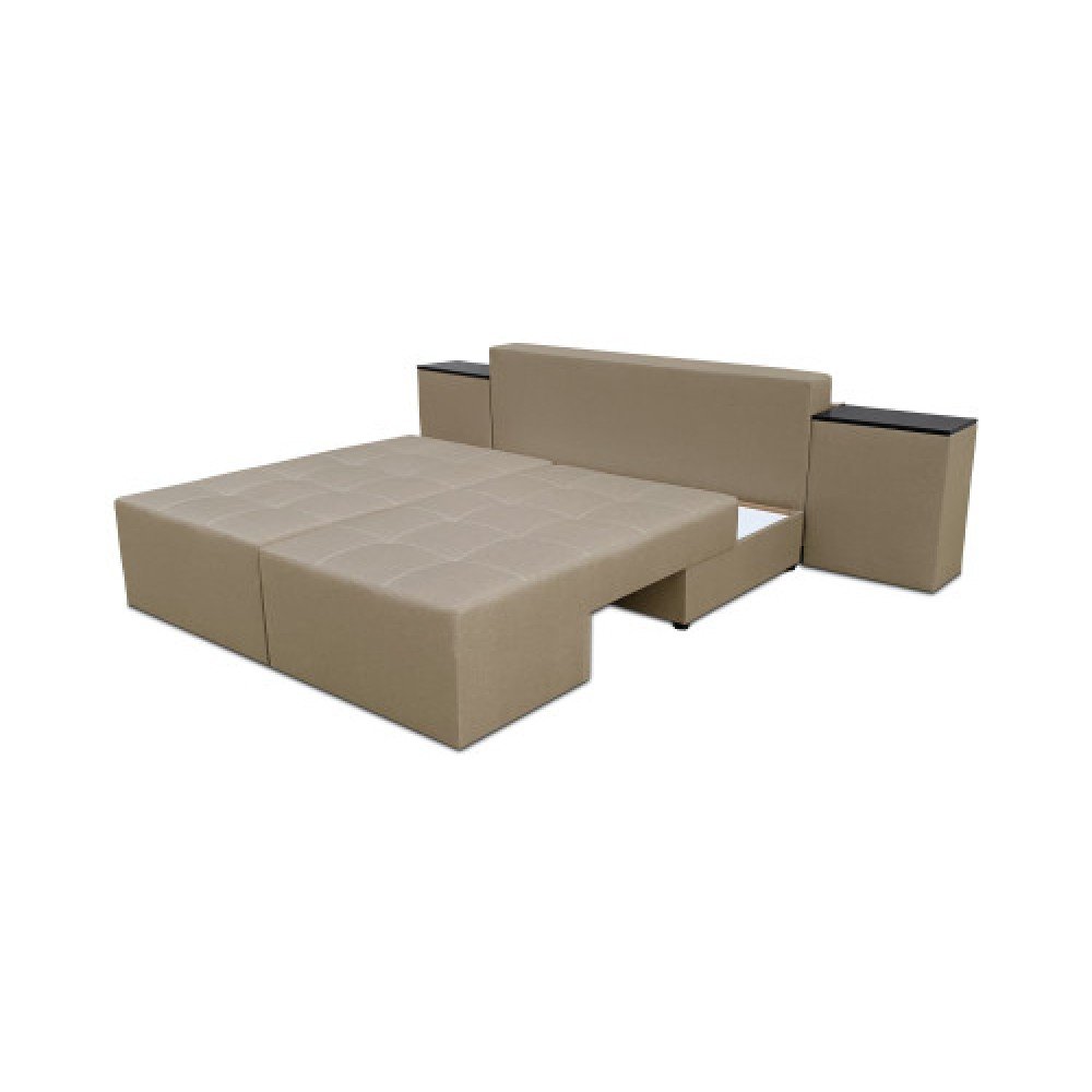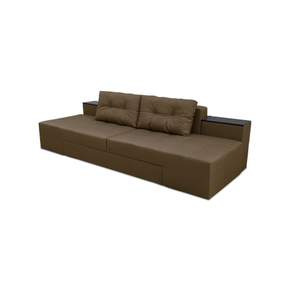 має 3 варіанти розкладки: прямий на 5 посадочних місць, ліжко двоспальне повноцінне (160х200), кутовий диван взаємозамінний (кут змінюється поворотом дивана). В бильцях у ізголів'я є ніші. В коробі знизу ящиків не має.