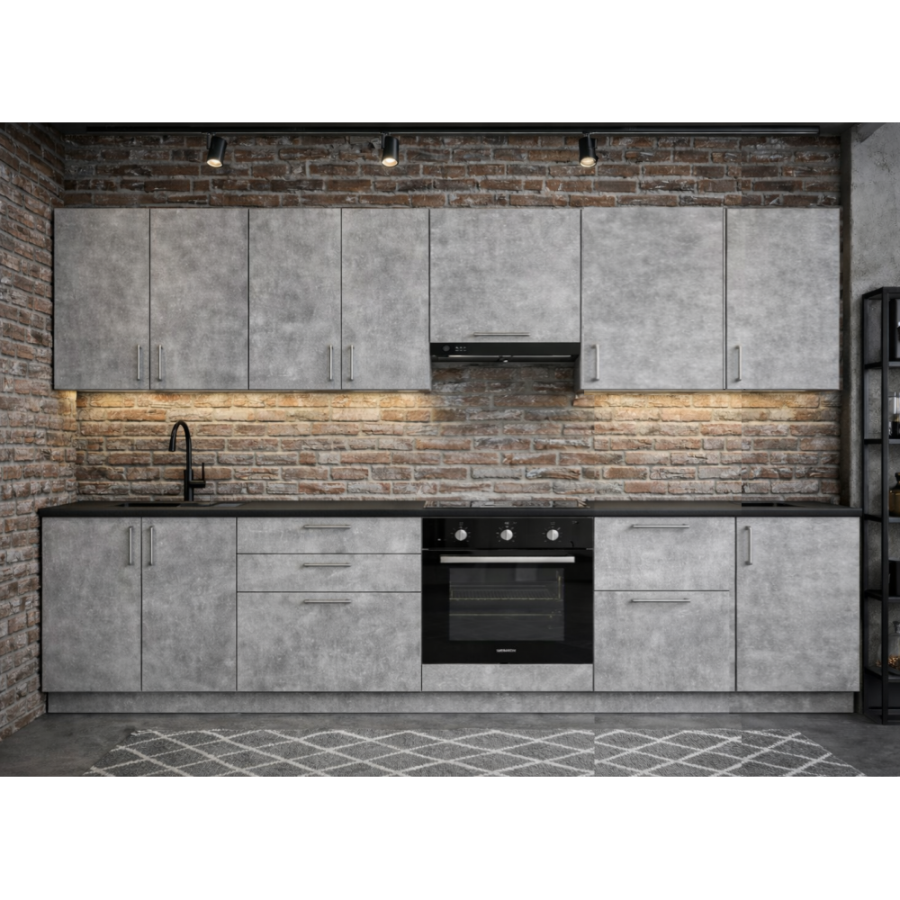 Комплектація - секції з фасадом та цоколем, ручкою. Стільницею укомплектовується додатково.
