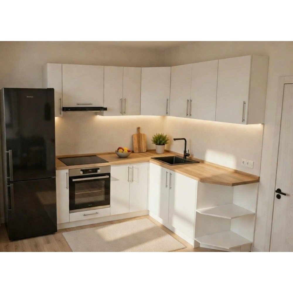 Кухню з фасадами ЛДСП кутова 2,0м*1,75м купити зі знижкою у Києві та Україні. Офіційний дистриб'ютор від фабрики Київський Стандарт.