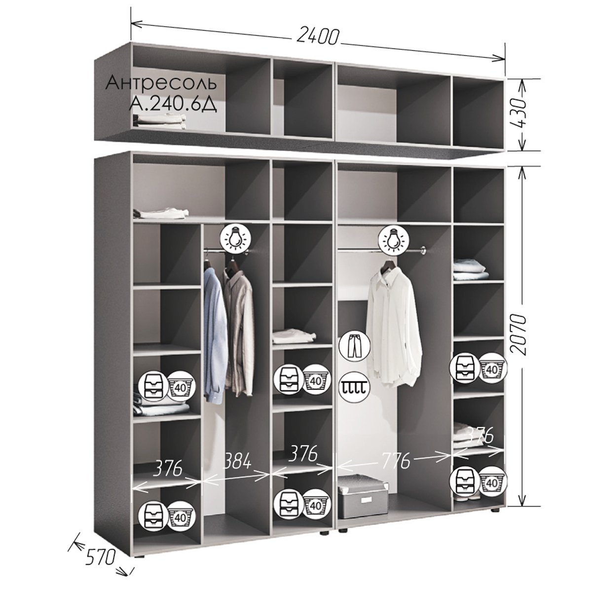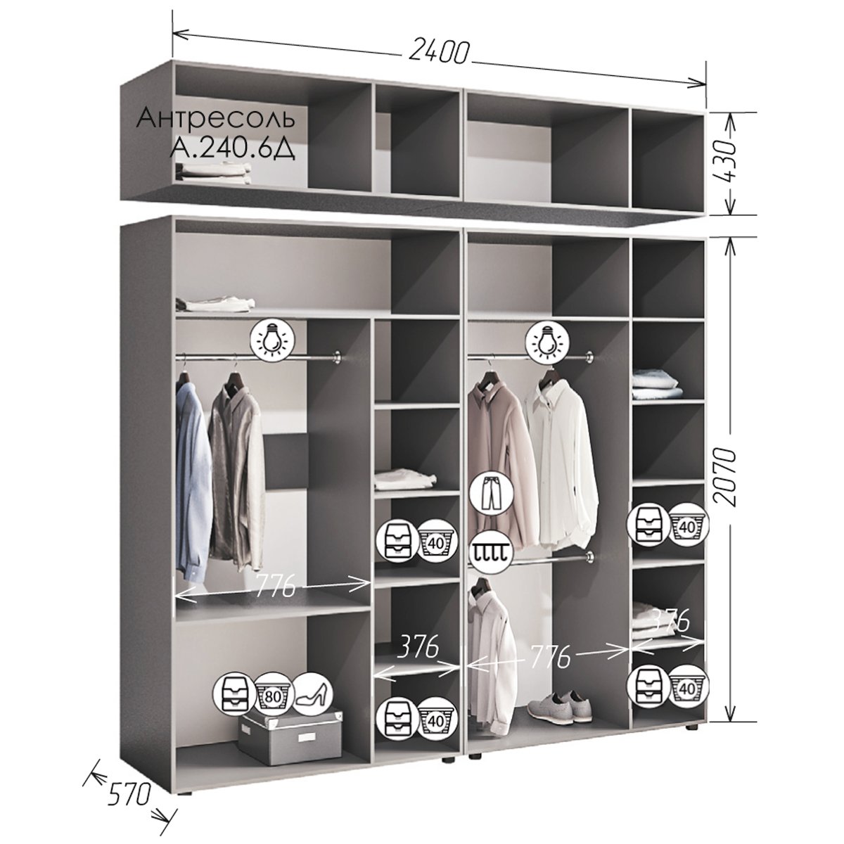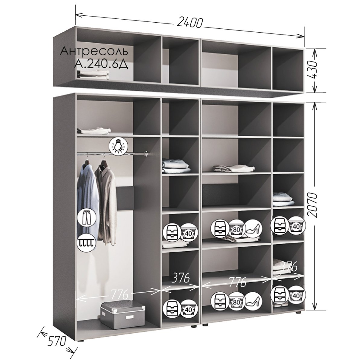 Ширина - 240 см (складається з 3х шаф по 80см)