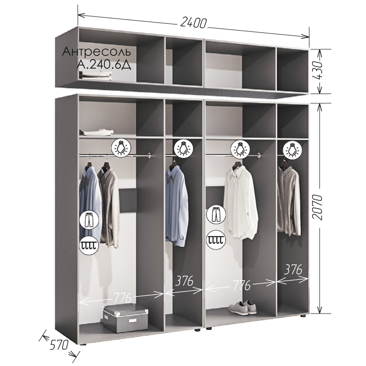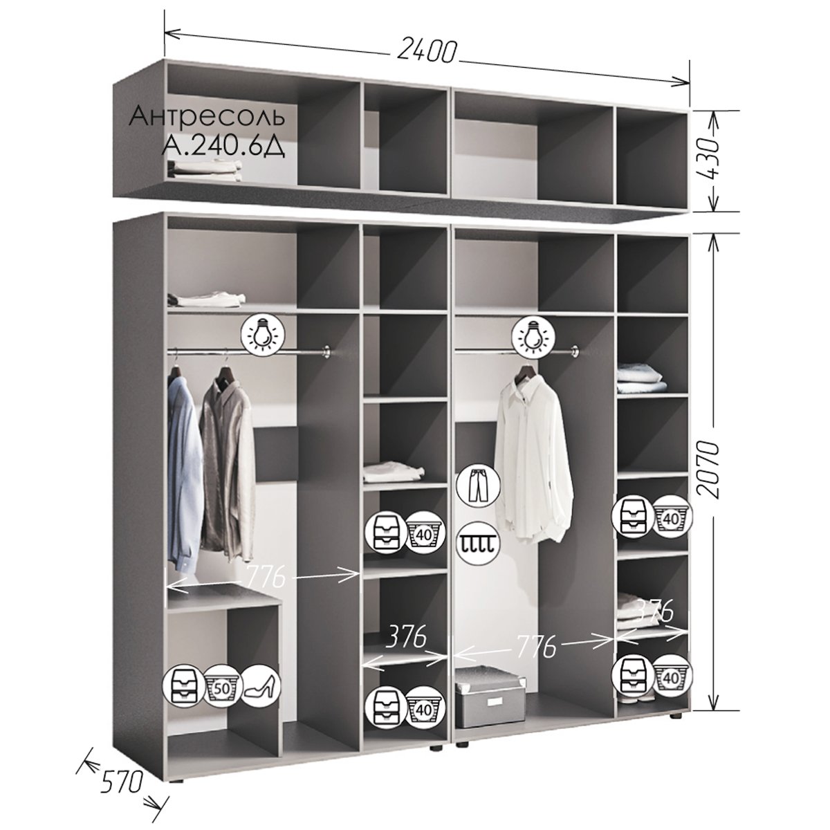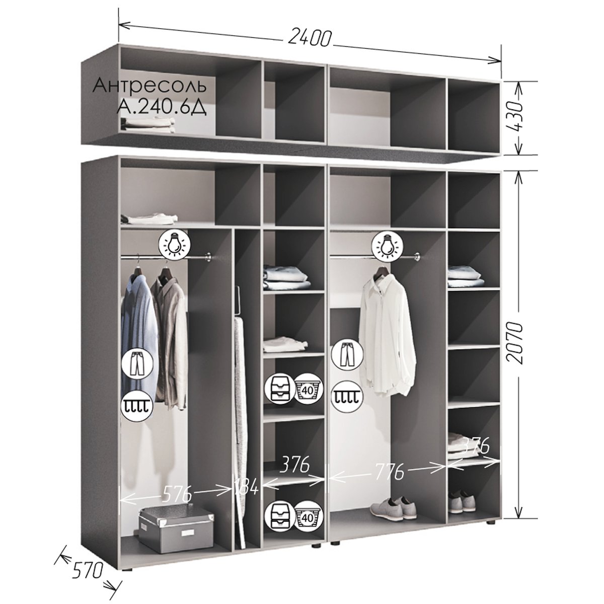 Ширина - 240 см (складається з 3х шаф по 80см)