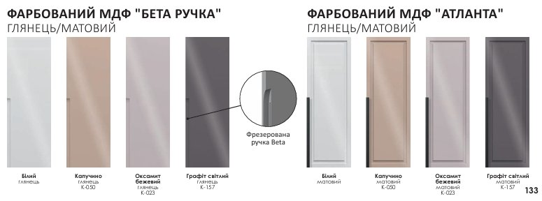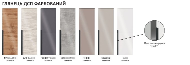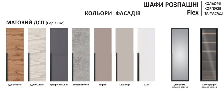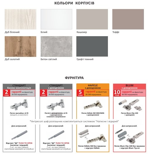 - 2 категорія: Дуб білений, Дуб золотий, Графіт, Кашемір ,Бетон світлий