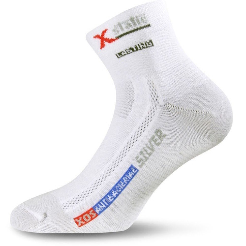 Легкі, тонкі шкарпетки від бренду Lasting.  Ідеально для трекінгу весною чи влітку. Виготовлені із суміші еластичних, штучних волокон. Шкарпетки відмінно прилягають до ноги і запобігають неприємному сповзанню. Області стопи, пальців і п'яти, які піддаються великому навантаженню, посилені. Зона в області підйому з сітчастою в`язкою для вентиляції. Розробники використали тонкий шов типу Россо, який не натирає. Lasting XOS здатні відводити вологу та мають антибактеріальні властивості.