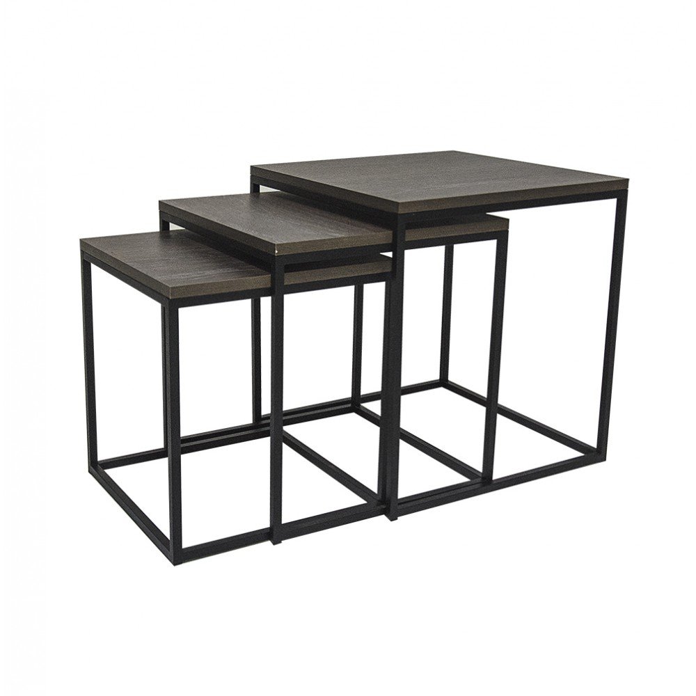 Три невеликі столики в єдиному стилі — відмінне доповнення будь-якої вітальні. Можуть використовуватися для повільного чаювання, зберігання потрібних дрібниць або предметів декору. Прості форми та натуральні матеріали – безперечні переваги цього комплекту.