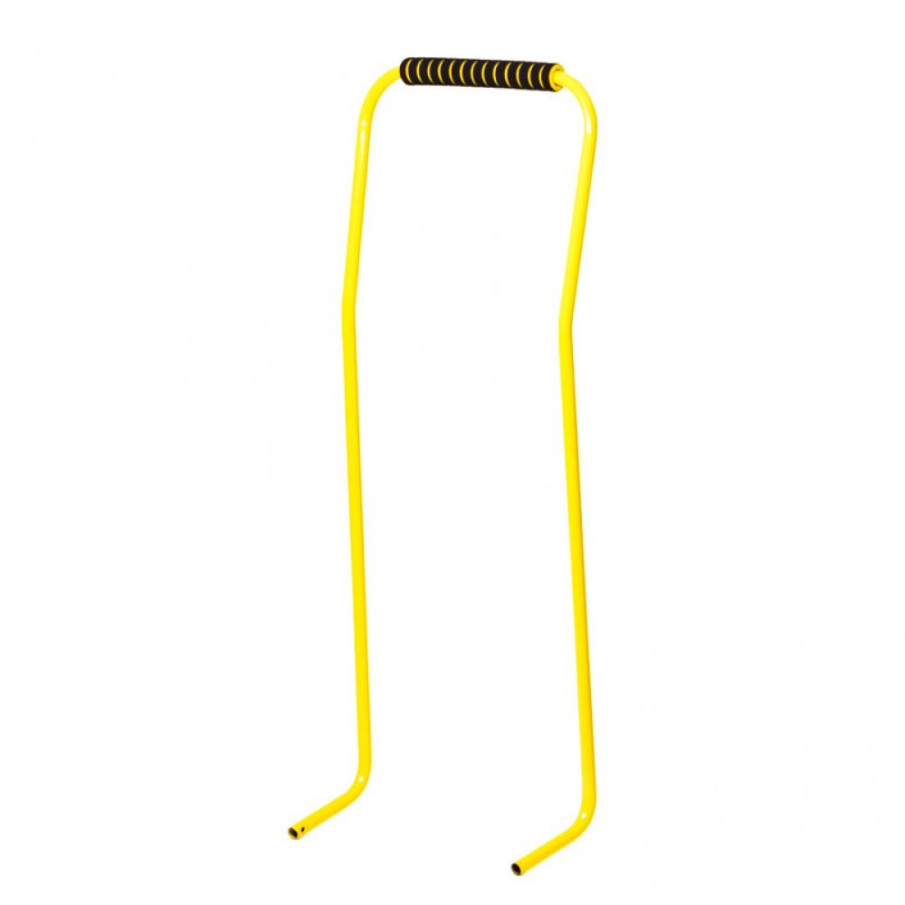 Жовта ручка-штовхач для санок легко встановлюється на різних моделях санок. Кріплення відбувається в нижній частині санчат, складнощів при цьому не виникне, все досить просто. Виконаний пристрій з металу, а також покритий спеціальним шаром лаку для надання ручці більш стильного зовнішнього вигляду. Також на ручці знаходиться накладка, яка дозволяє зручніше керувати санчатами. Основне завдання даного виробу зробити керування санчатами більш зручним та простим. Ви зможете задавати напрямок санок легким зусиллям руки, що особливо актуально під час тривалих прогулянок з дитиною.